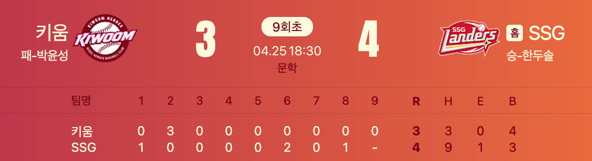 [랜더스 26번째 경기] vs 키움 / 살얼음판에서 빠지다 (0) | 2025.04.26 |