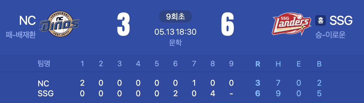 [랜더스 41번째 경기] vs NC / 어제의 6:3이 오늘의 3:6이 되버림 (0) | 2025.05.14 |